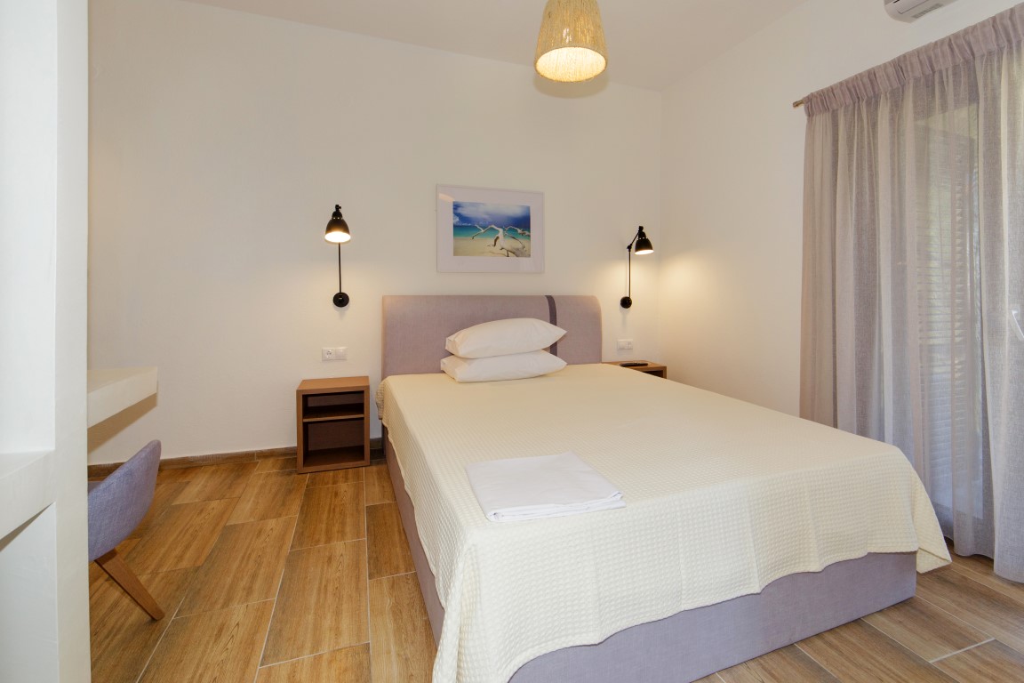 The apartments offer a fully equipped kitchen with refrigerator, air conditioning, wi-fi, t.v. sat, bbq point at the yard, parking place, children’s playground, beach umbrellas and sun beds , all included in the price.