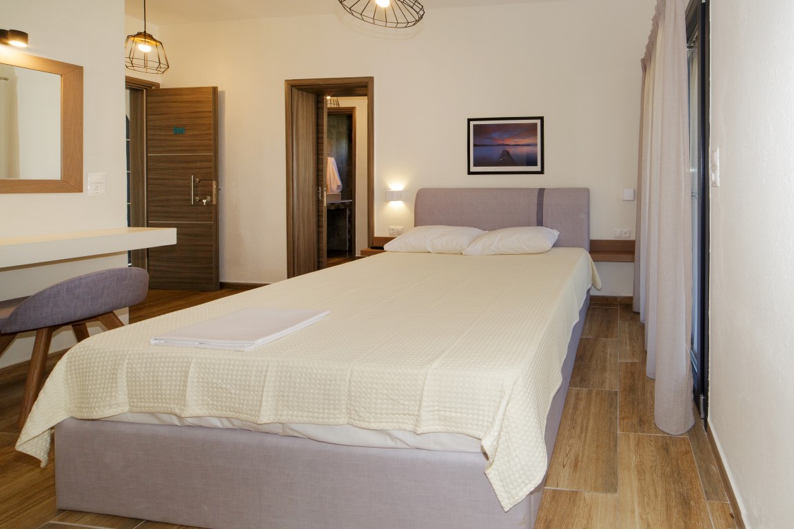 On our big and spacious balconies with the beautiful sea view of the Vourvourou small islands you can enjoy your breakfast or dinner or you can either use our wooden tables by the sea.